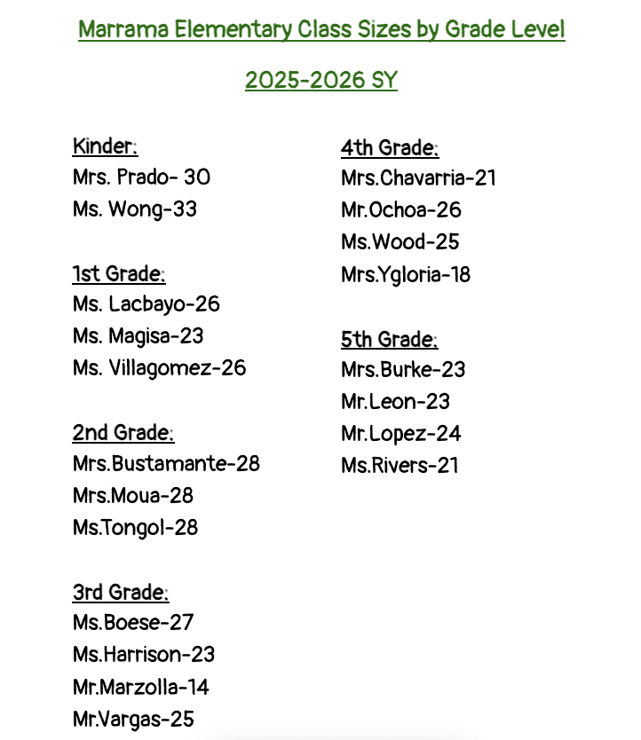 We would like to share with you this general information about Marrama Elementary for the upcoming school year.