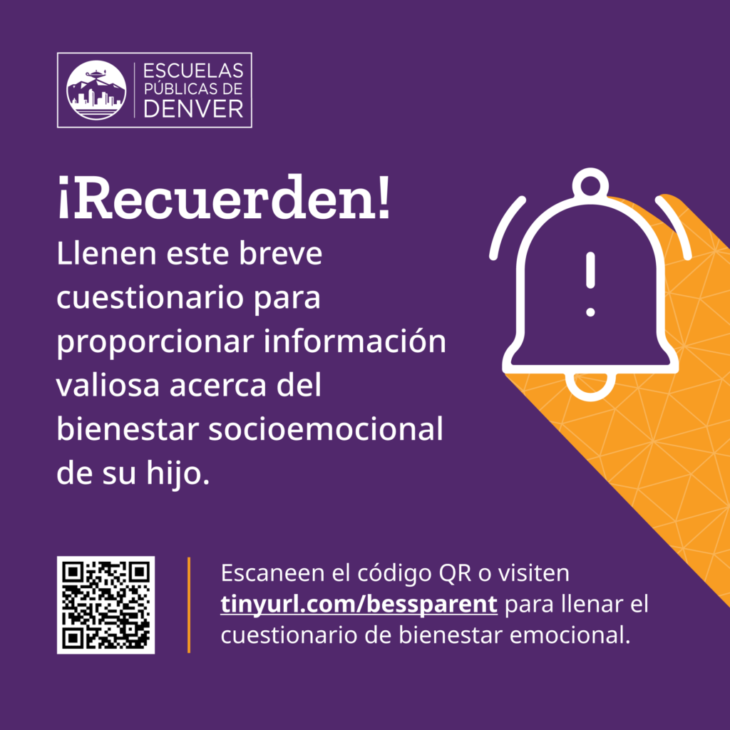 Agradecemos que completen la encuesta electrónica dentro de las próximas tres semanas. Aunque los datos son más accesibles en forma electrónica, si hubiera necesidad de completar la encuesta en papel, comunÃquese con la oficina principal o enfermerÃa de la escuela, y luego devuelvan el documento dentro de las 3 semanas siguientes a este mensaje.